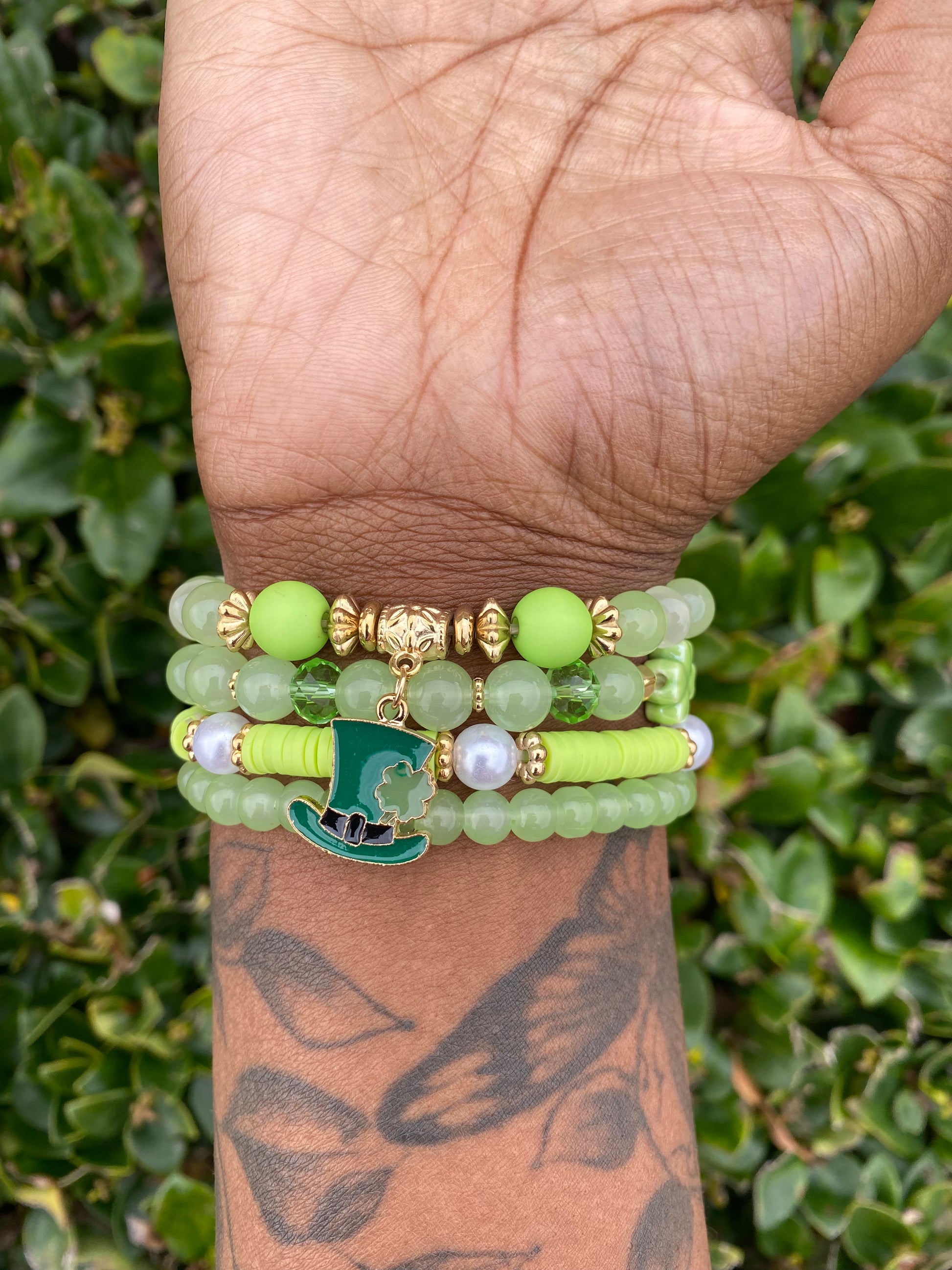 Celebrate the luck of the Irish with our festive St. Patrick Day bracelets! Designed with vibrant green beads, shamrock charms, and gold accents, these bracelets add a touch of charm to your holiday outfit.